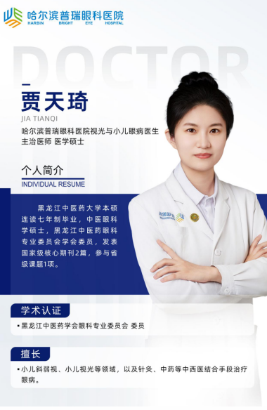 哈尔滨普瑞眼科小儿眼病与视光专科贾天琦医生: