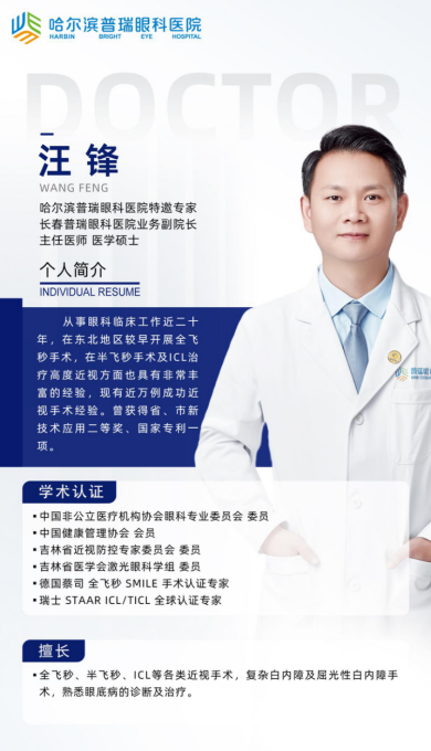 哈尔滨普瑞眼科屈光专科特邀专家汪锋: